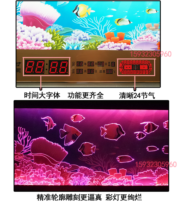 超薄鋁合金邊框,七彩燈顯示更漂亮,客廳裝飾日歷掛鐘