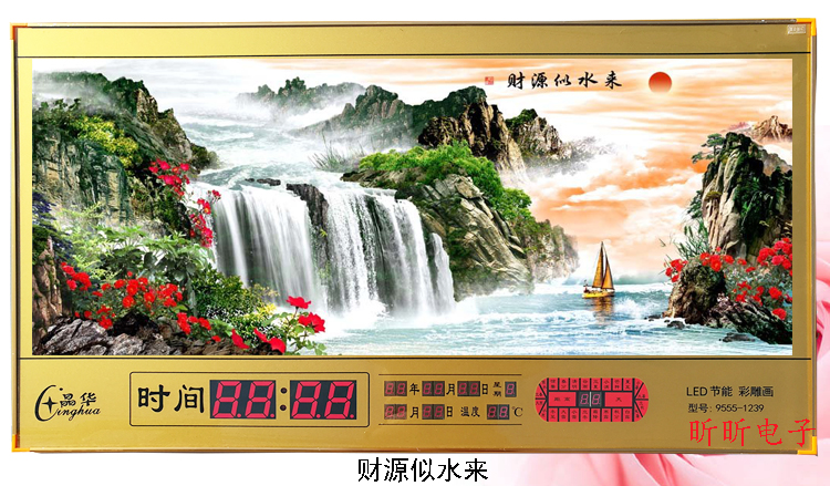 新房客廳裝飾日歷掛鐘,家和風(fēng)景萬年歷,超薄七彩燈光更漂亮