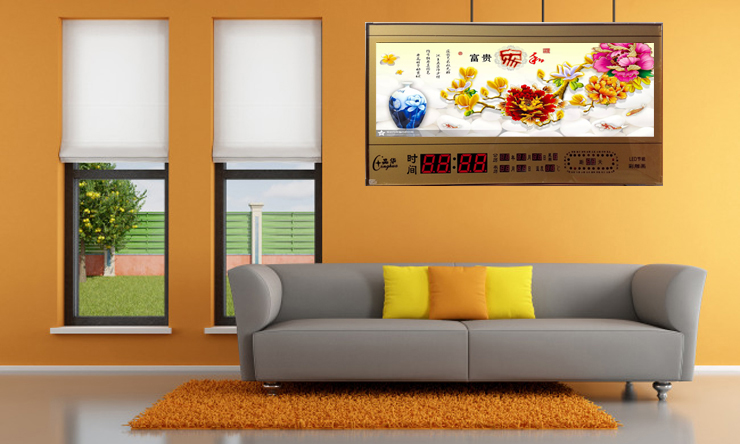新房客廳裝飾日歷掛鐘,家和風景萬年歷,超薄七彩燈光更漂亮